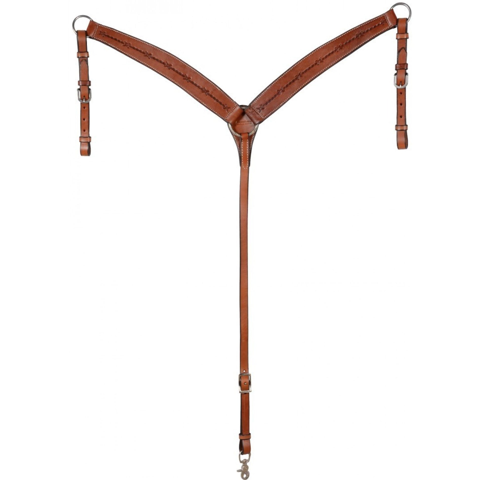 Le Country Legend Sunflower Breastcollar se distingue par son cuir bicolore avec motifs estampés, son lacet contrastant, ses boucles en argent allemand et sa quincaillerie en acier inoxydable. Un bel équilibre entre style western et fonctionnalité durable.