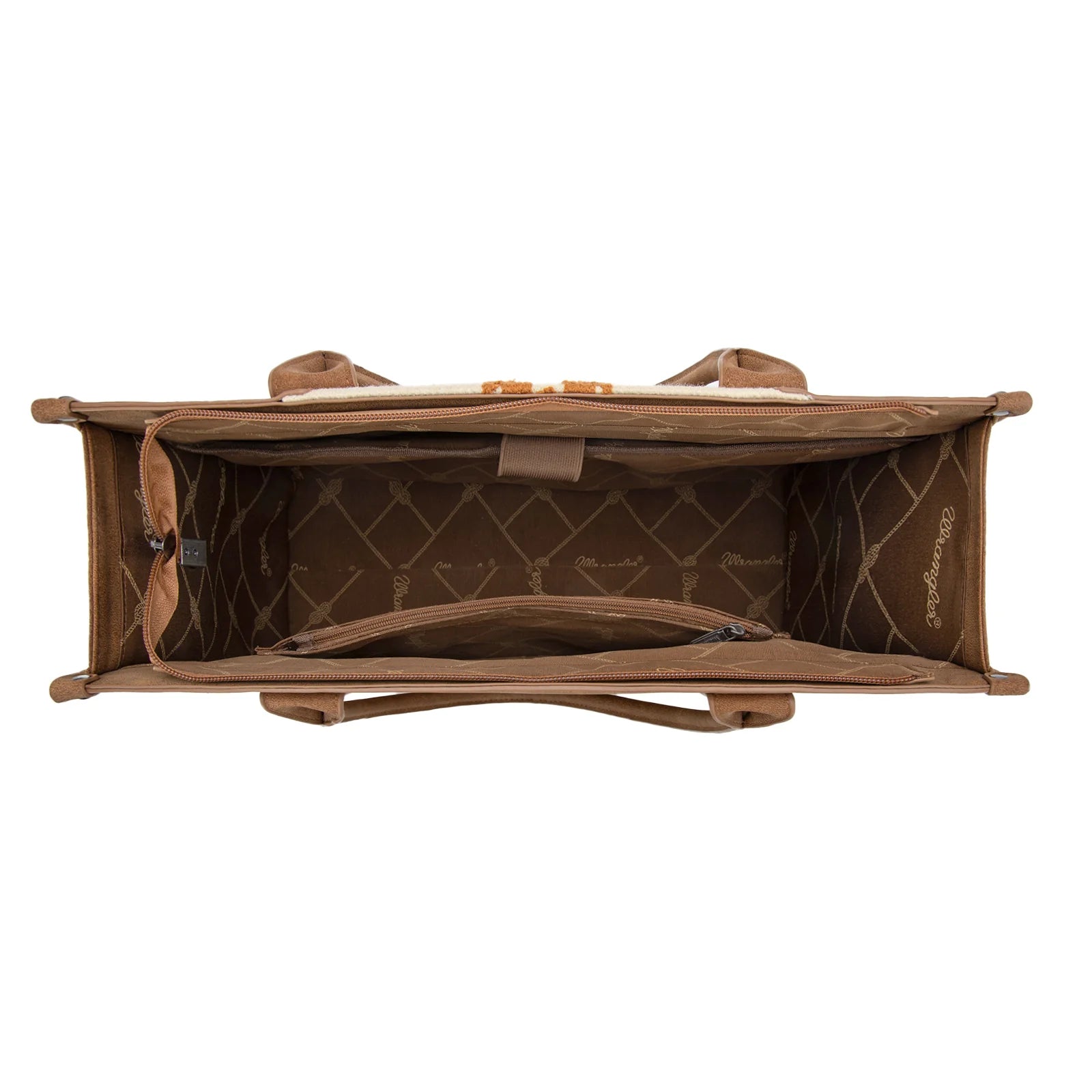 Ce sac allie élégance vintage et fonctionnalité moderne, parfait pour un usage quotidien avec une touche western affirmée.Caractéristiques :Cuir embossé floral vintageTapisserie imprimée rétro aztèqueDétails au point fouet (whipstitch)Logo Wrangler appliqué à l'avantFermeture zippée sur le dessusIntérieur : 1 poche zippée + compartiment rembourré pour appareils électroniquesPoche arrière zippée dissimulée pour arme (10" x 6")Poche arrière ouverte pour un accès rapidePieds en métal pour protéger la base et assurer une bonne stabilitéPoignées rondes doubles avec une chute de 10"Dimensions : 15.5" x 5" x 12"Un sac polyvalent et stylé, conçu pour transporter tes essentiels avec sécurité et caractère.