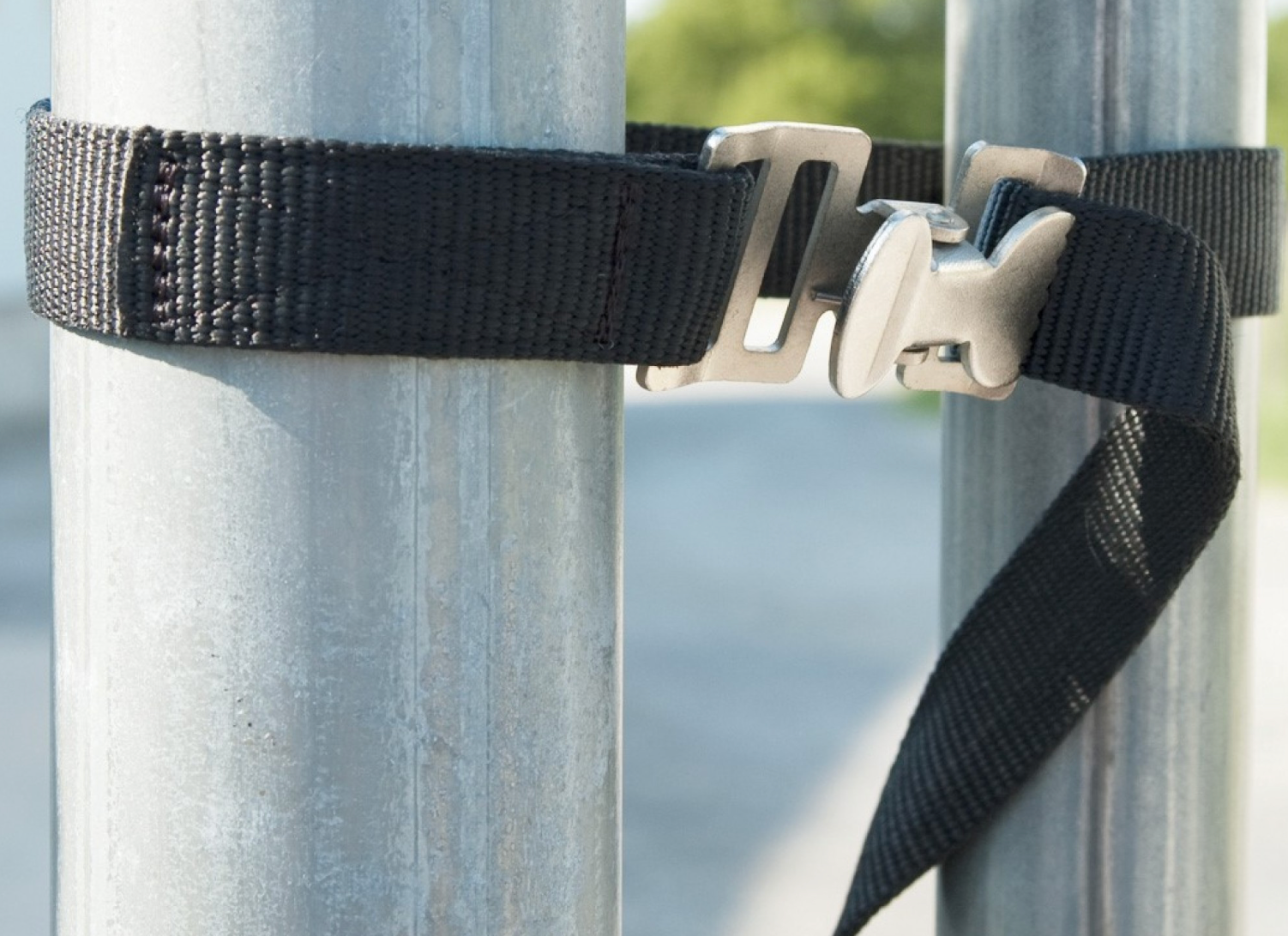 Permet de garder la barrière fermée et sécurisée. Sangle en poly avec pince alligator facile à utiliser d'une seule main, maintenant fermement la sangle sous pression. Offert en noir seulement. Longueur de 4 pieds.